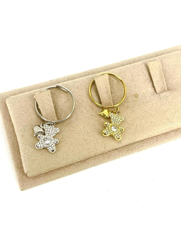 Anello con teddy e cuore pendente in acciaio anallergico e inossidabile,misura regolabile